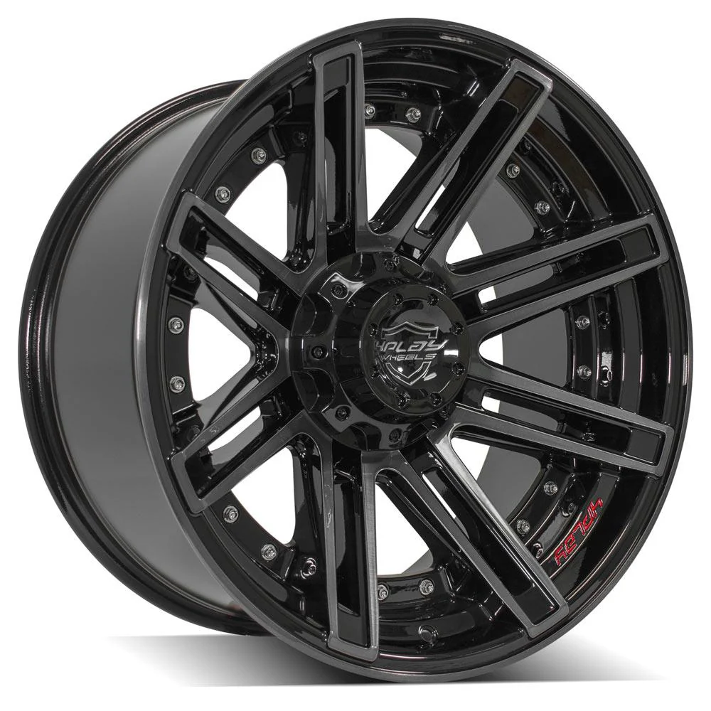 These 4P08 aftermarket wheels are 20×10 brushed black rims designed to fit the GM-Ford-Lincoln-Nissan-Toyota and other compatible vehicles. Please check our fitment tab for specific year-make-model applications and will-not-fit exceptions before ordering.