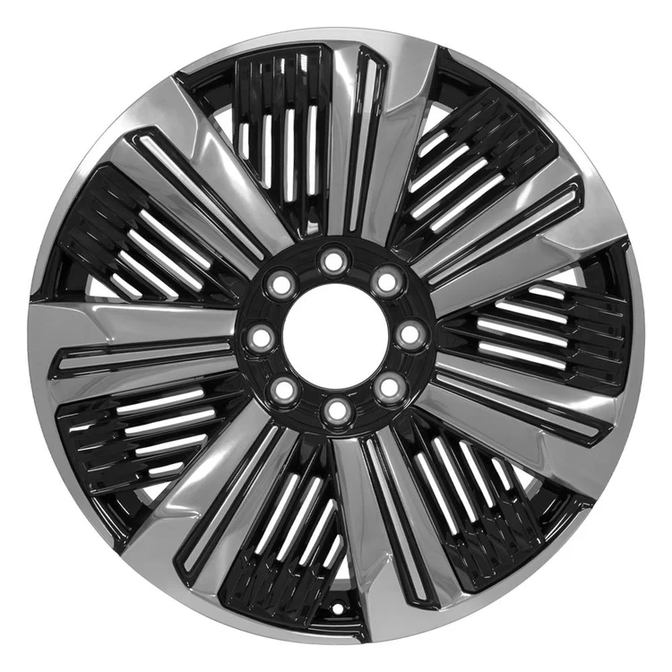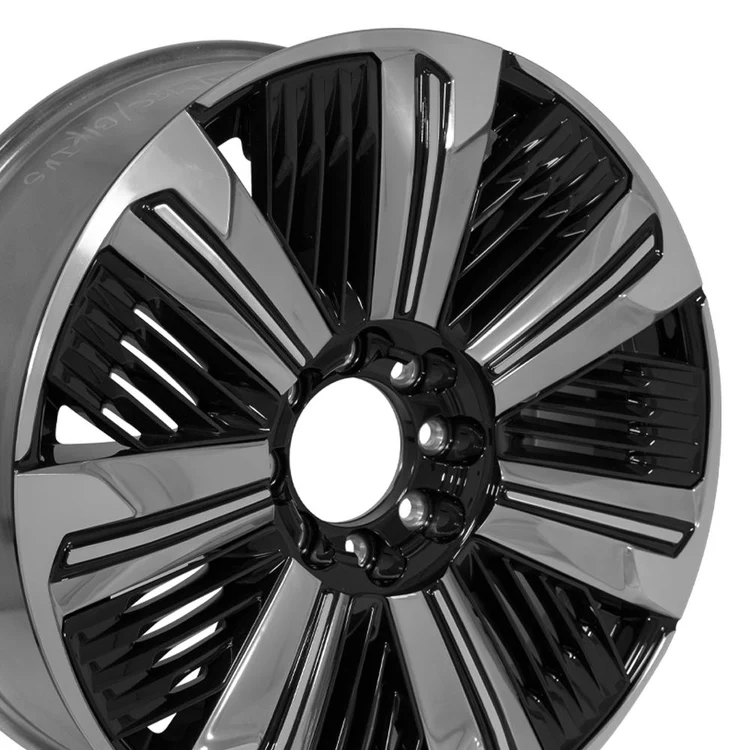 These CA24 factory original OEM wheels are 24×9 gloss black with polished face rims designed to fit the Cadillac Escalade IQ and other compatible vehicles. Please check our fitment tab for specific year-make-model applications and will-not fit exceptions before ordering.