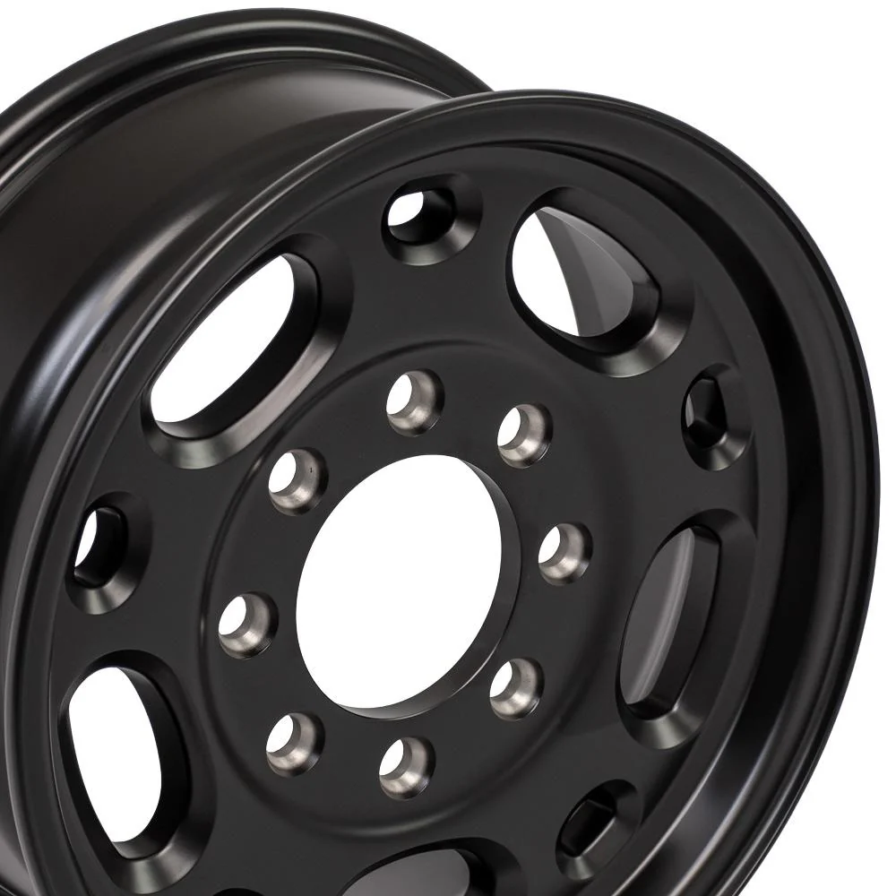 These CV82 replicas are 16×6.5 Satin Black Chevy Wheels designed to fit the GMC Chevy Trucks high quality replica GMC Wheels and Chevy Truck Rims. Please check our fitment tab for specific year-make-model applications and will-not-fit exceptions before ordering.