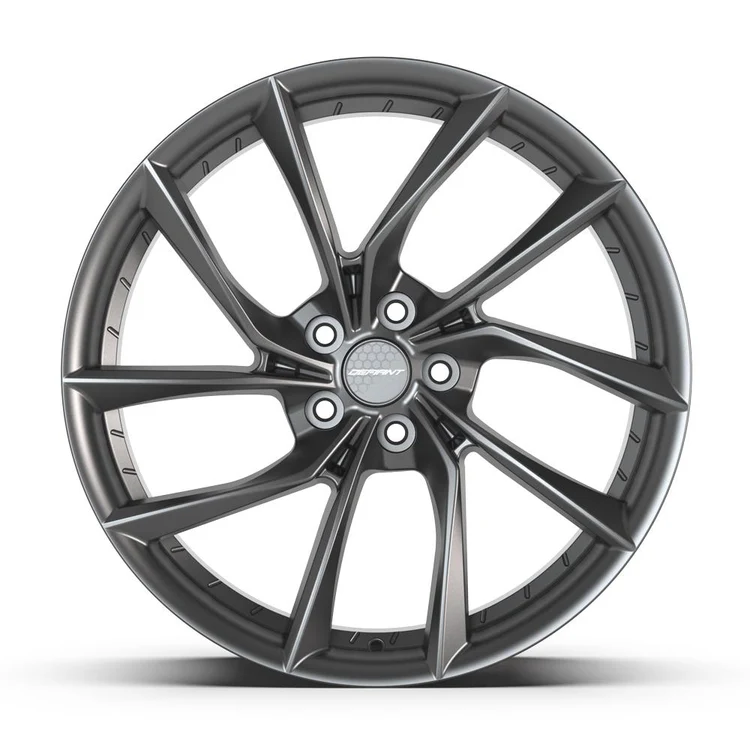 These DF06 Defiant wheels are 20×9 & 20×10 dark satin charcoal rims designed to fit the Tesla Model X / Model S and other compatible vehicles. Please check our fitment tab for specific year-make-model applications and will-not-fit exceptions before ordering.