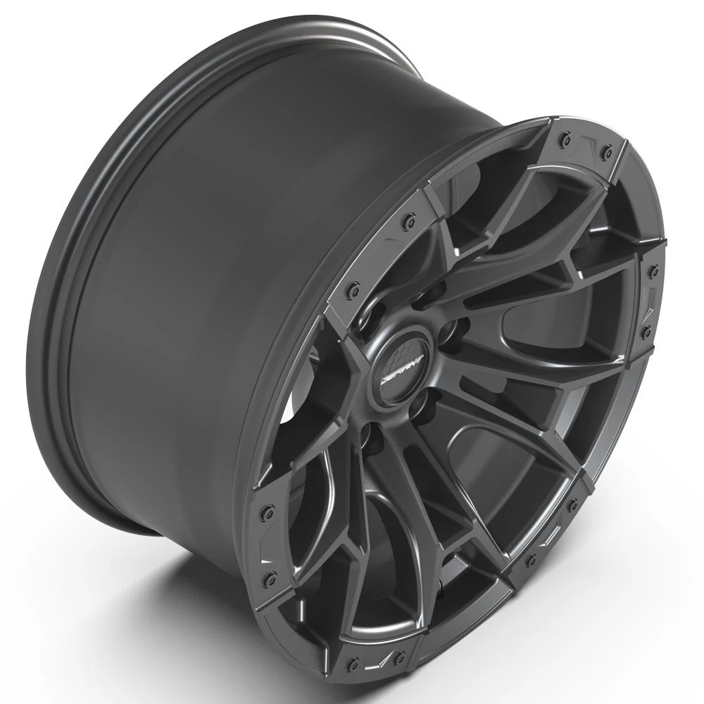 These DF04 Defiant wheels are 17×9 dark satin charcoal rims designed to fit the Ford F-150 and other compatible vehicles. Please check our fitment tab for specific year-make-model applications and will-not-fit exceptions before ordering.