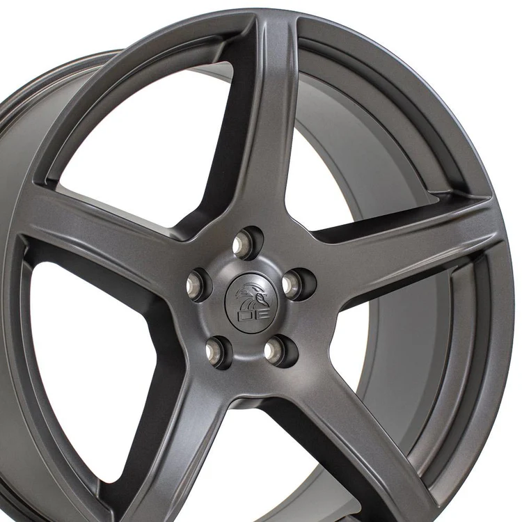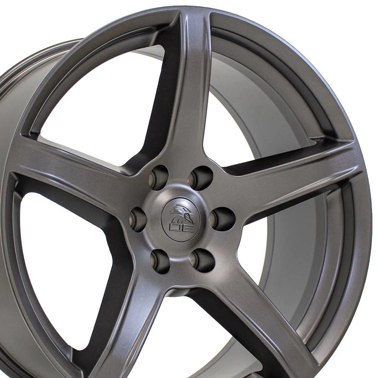 These DG22 replica wheels are 20×9.5 satin gunmetal rims designed to fit the Dodge Challenger and other compatible vehicles. Please check our fitment tab for specific year-make-model applications and will-not-fit exceptions before ordering.