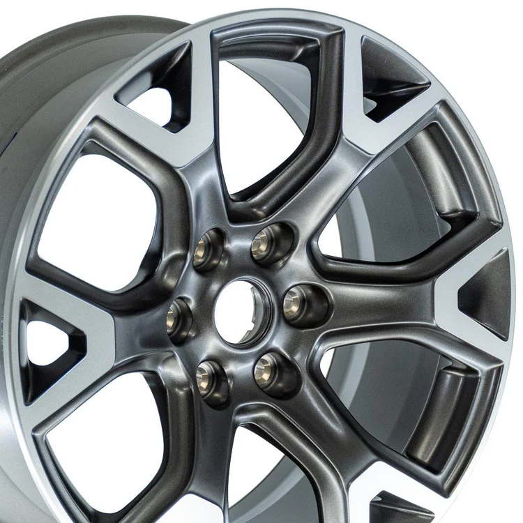 These JP31 factory original OEM wheels are 20×9 satin gunmetal machined rims designed to fit the Jeep Wagoneer and other compatible vehicles. Please check our fitment tab for specific year-make-model applications and will-not fit exceptions before ordering.
