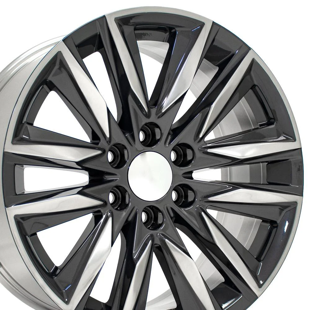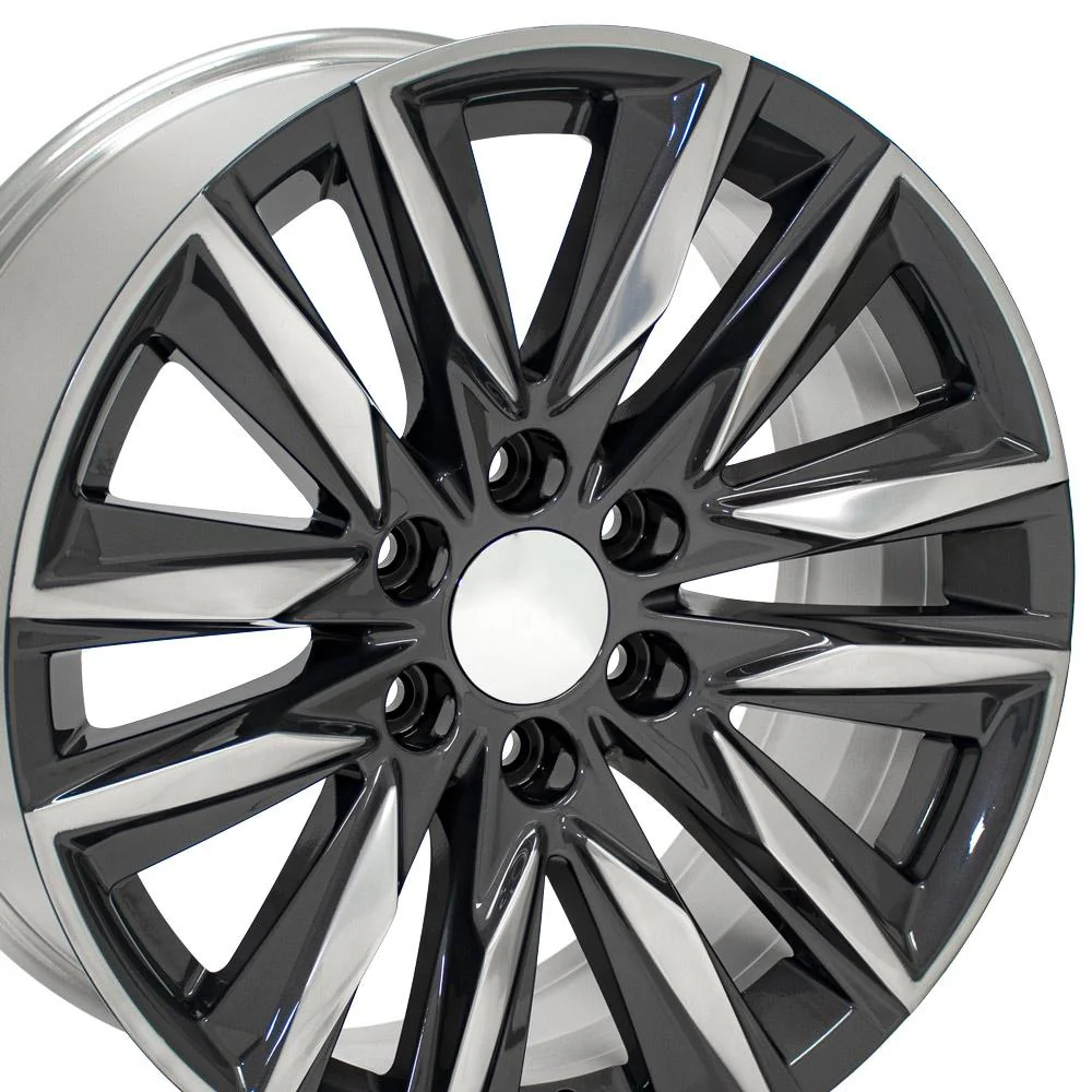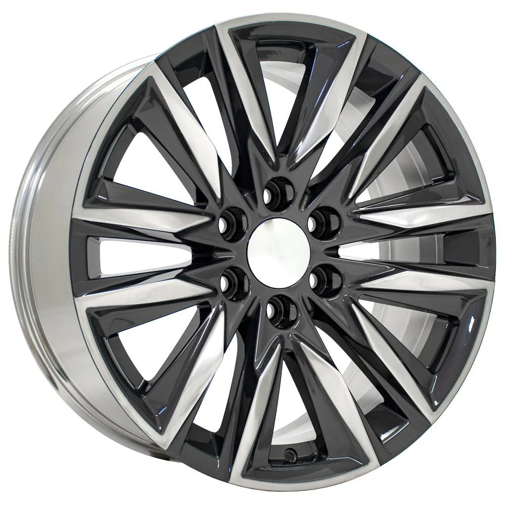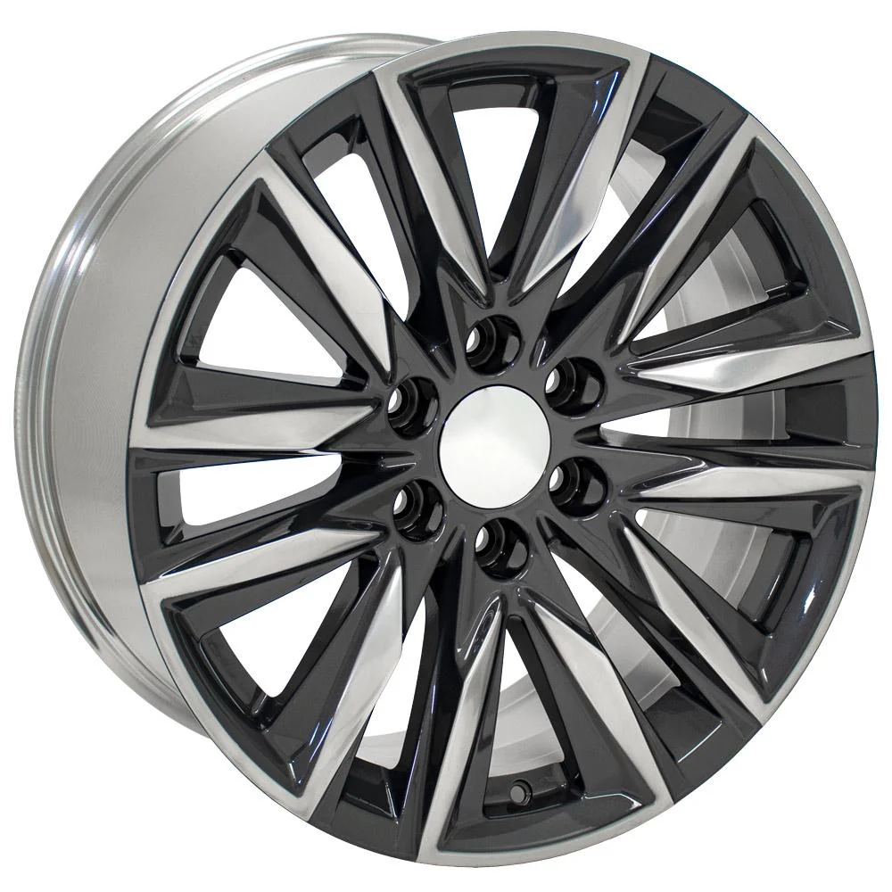 These CA91 Replica Wheels are 20×9 Polished Gunmetal rims designed to fit late model GMC Sierra, GMC Yukon, Chevy Silverado, Chevy Tahoe including 2019 models. This wheel was originally featured on the 2022 Cadillac Escalade as an upgraded wheel option. Please check our fitment tab for specific year-make-model applications and will-not-fit exceptions before ordering.