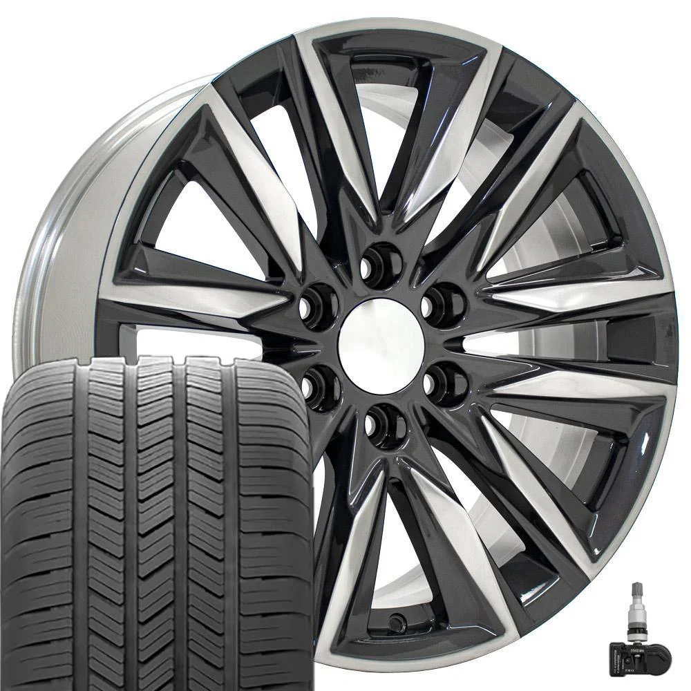 These CA91 Replica Wheels are 20×9 Polished Gunmetal rims designed to fit late model GMC Sierra, GMC Yukon, Chevy Silverado, Chevy Tahoe including 2019 models. This wheel was originally featured on the 2022 Cadillac Escalade as an upgraded wheel option. Please check our fitment tab for specific year-make-model applications and will-not-fit exceptions before ordering.