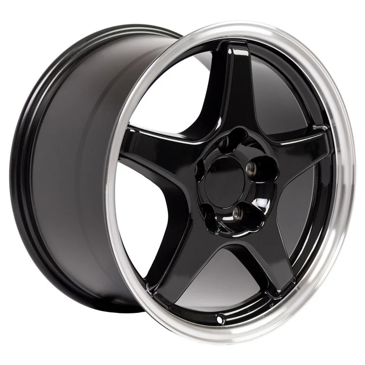 UPC 9509462 17 Inch Rims Fit Corvette Camaro ZR1 Style CV01 Black Wheels and Toyo Extensa Hollander 5035. This is a non-staggered set of four rims and four tires will arrive to you mounted and balanced. The Toyo Extensa HP II 275/45-17 is a High Performance All Season Tire designed as a value driven option providing a perfect balance between outstanding performance, quality and styling. The unidirectional tread design provides a perfect blend of all season traction. Full depth wave sipes provide a smooth and quiet ride, minimizes irregular wear and improves snow traction. Single cut and double cut tapers optimize block stiffness enhancing braking performance. Finally, the silica coumpound provides a better wet perfomance while maintaining the tread life performance of your new Toyo Extensa HP II Tires. 17×9.5 Rims Fit C4 Corvette and F Body Camaro ZR1 Style CV01 . These are Gloss Black Replica Wheels Hollander Number 5035