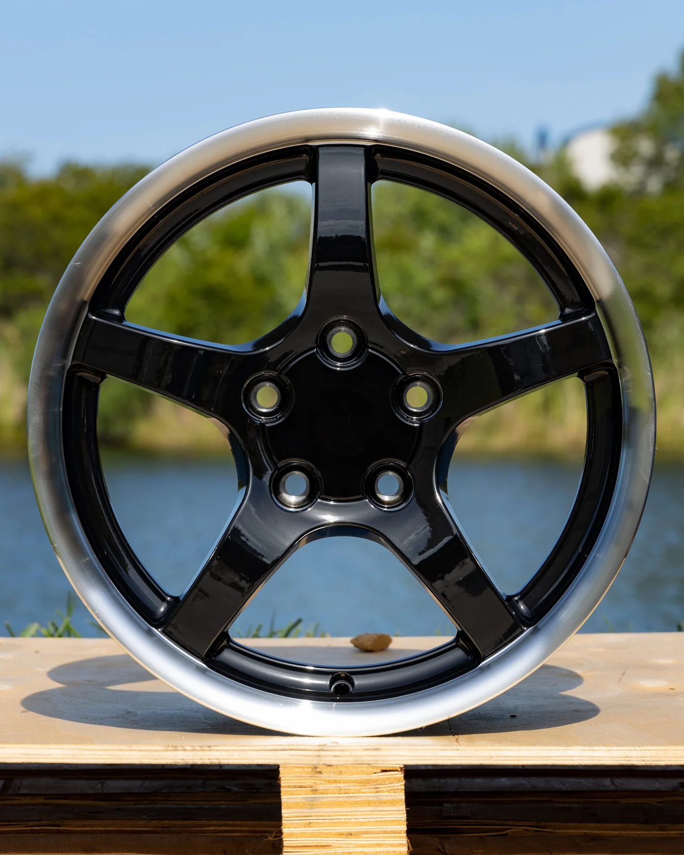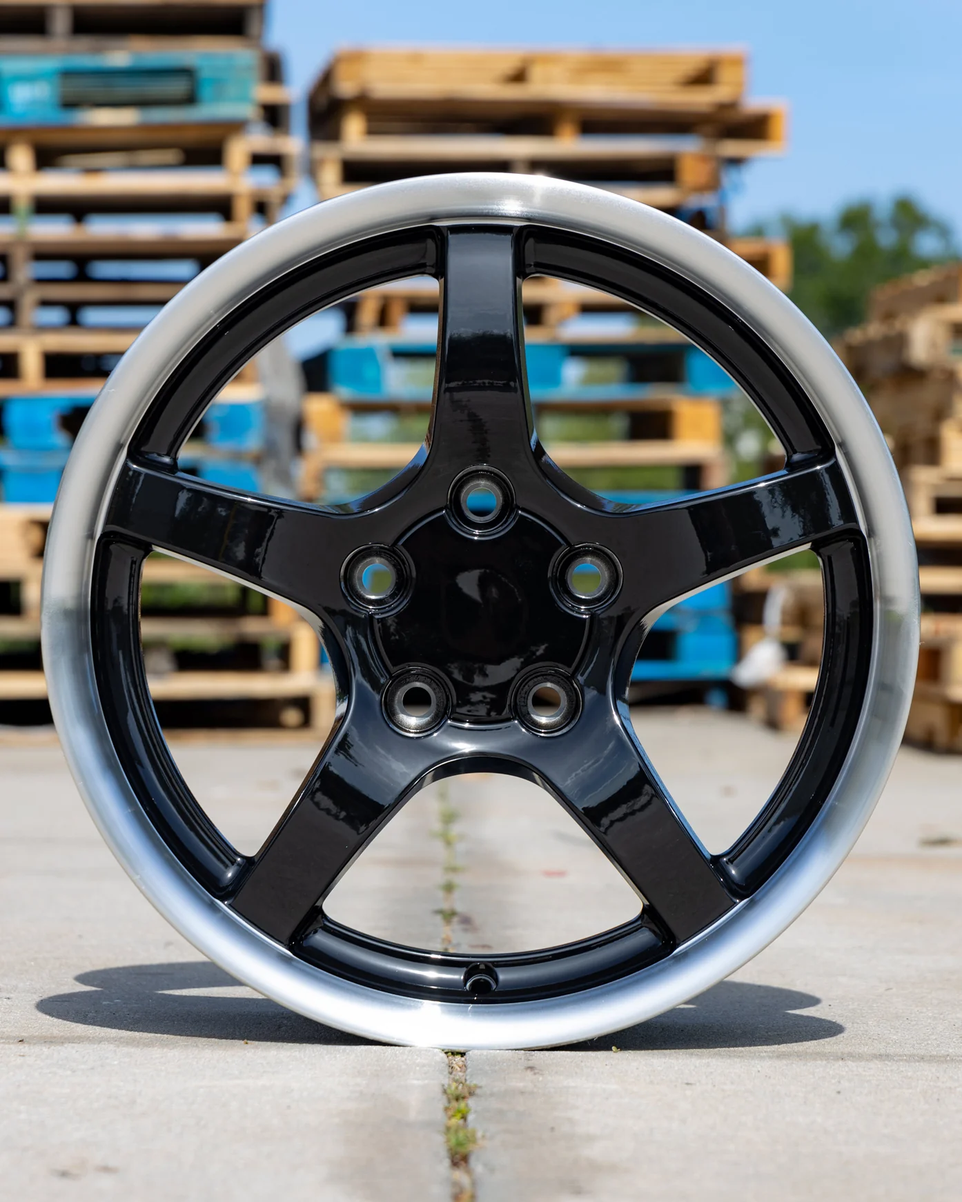 17-inch Rims for Corvette C5 CV05 Deep Dish 17×9.5 Black Wheels SET.