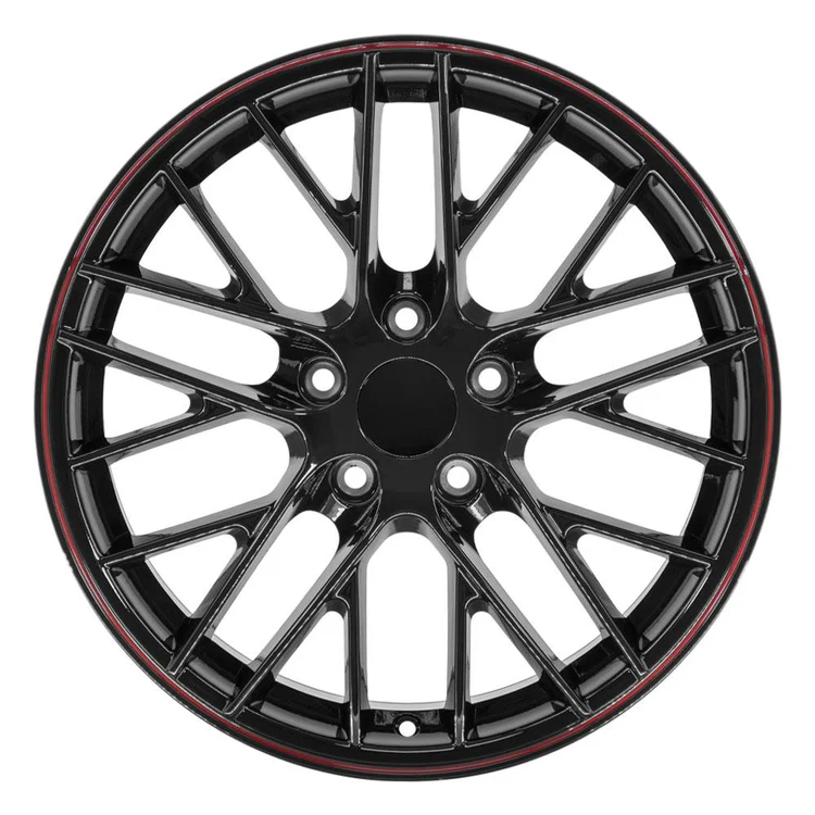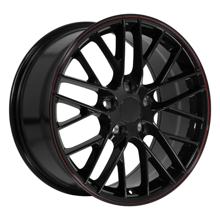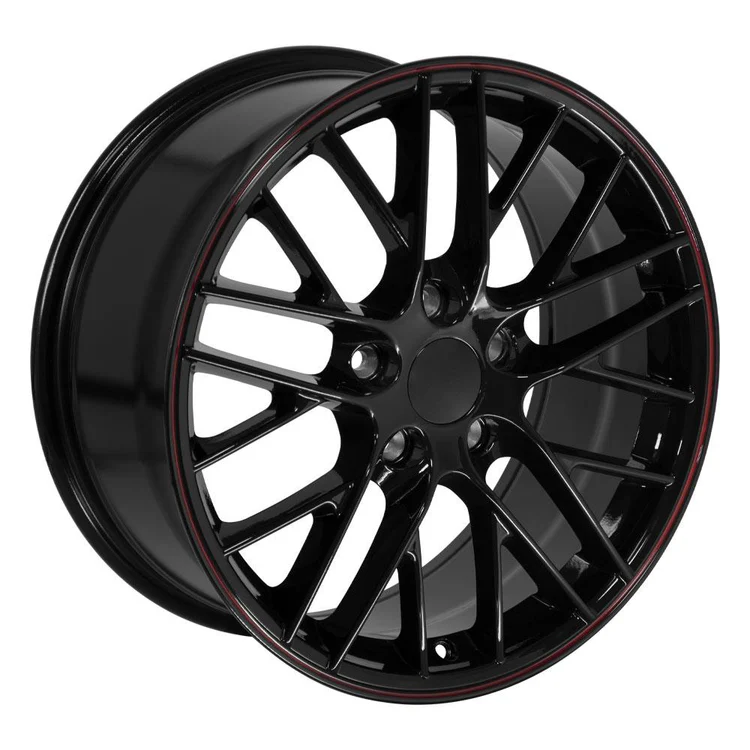 This CV08B replica wheels package includes a set of four black with red line rims and a set of four 245-40-18 iMove G3 tires. This wheels and tires package is designed to fit the Chevy Corvette and other compatible vehicles. Please refer to our fitment tab for specific year-make-model applications and will-not-fit exceptions before ordering.