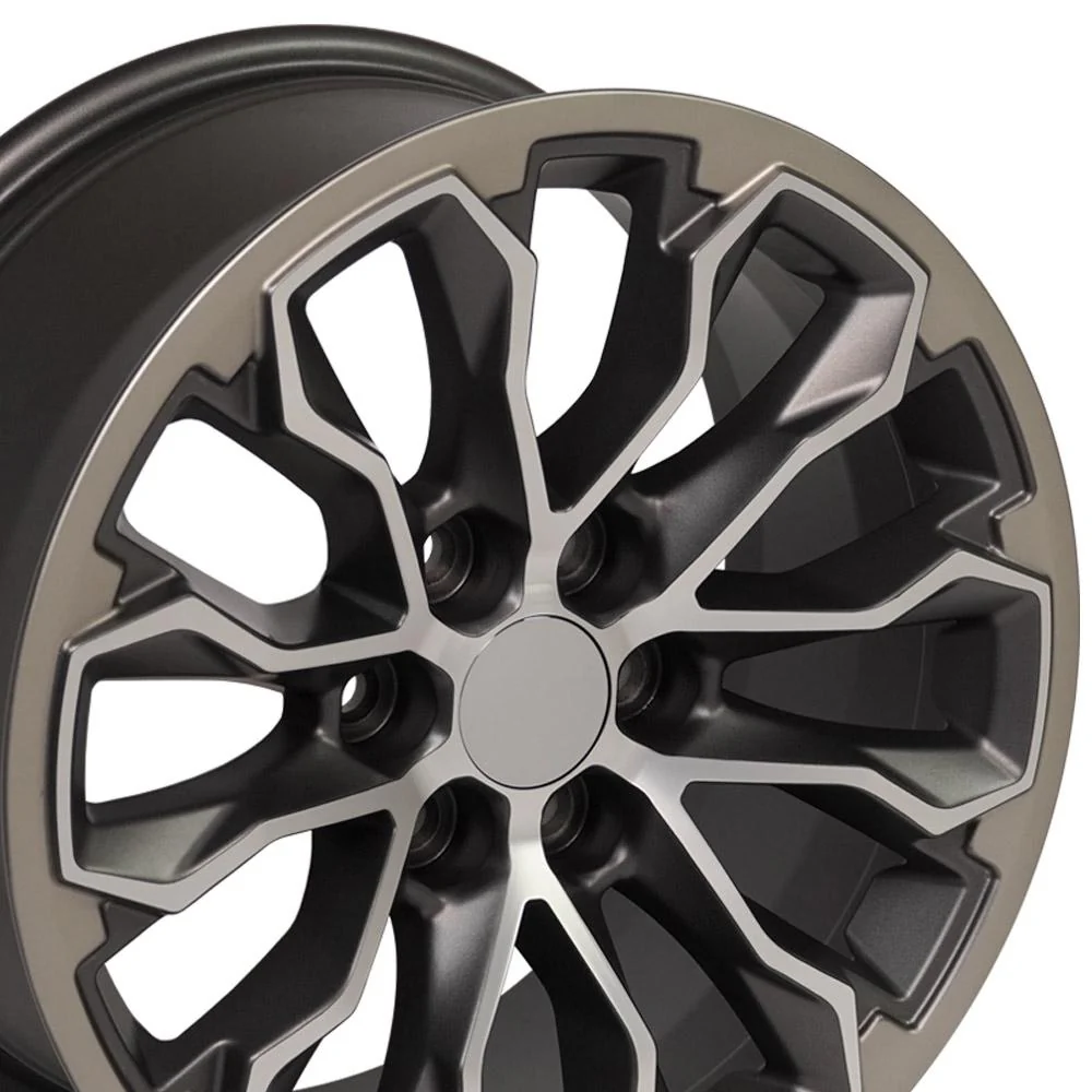 This CV54 replica wheels set includes four 17×8 satin gunmetal machined face – two tone rims designed to fit the Chevrolet Colorado ZR2 and other compatible vehicles. Please check our fitment tab for specific year-make-model applications and will-not-fit exceptions before ordering.