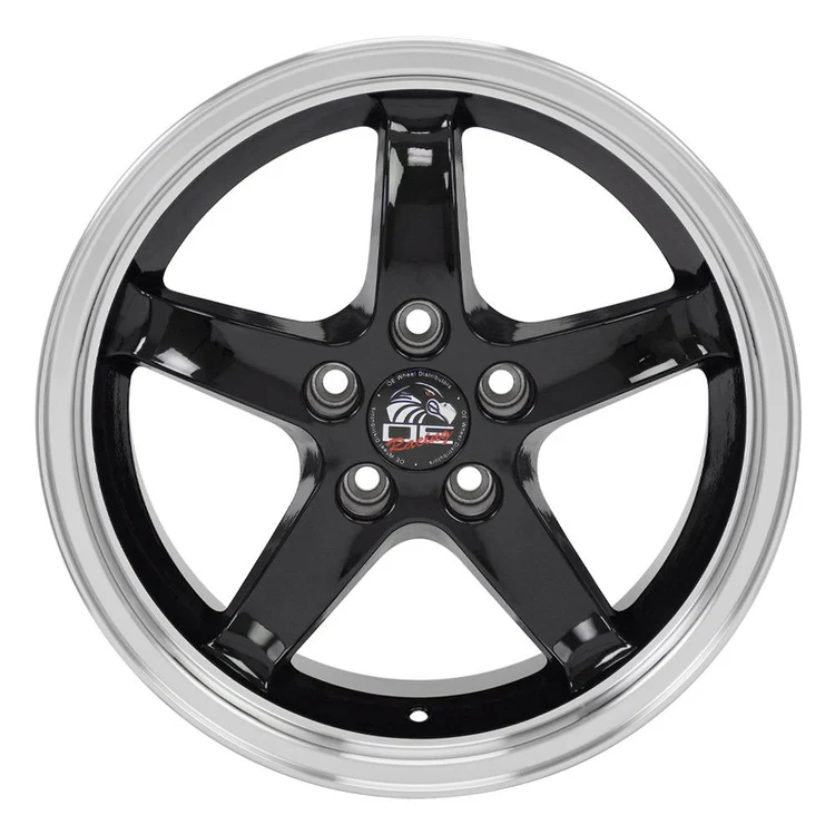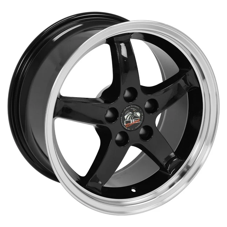 With styling like the Cobra R rim, this deep dish wheel and tire combination is a perfect fit for your 4th generation SN-95 Mustang. This set of four black 17×9 rims features a machined lip and is guaranteed to fit stock Ford Mustangs from 1994-2004. The FR04 is an injection fed aluminum Cobra style rim, and is covered by a lifetime structural warranty.