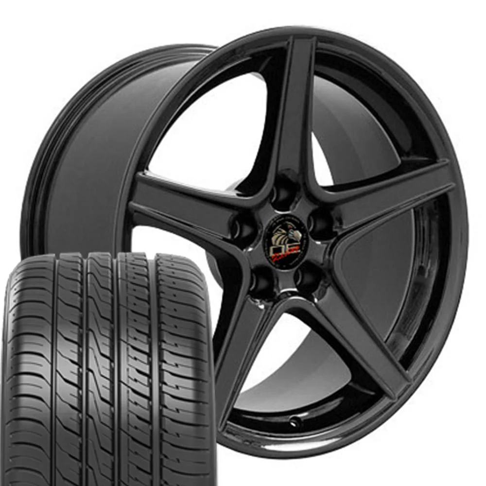 This FR06 replica wheels package includes a set of four 18 inch Saleen style black rims and a set of four 245-40-18 Ironman iMove G3 tires. This wheels and tires package is designed to fit the fourth generation Ford Mustang and other compatible vehicles. Please check our fitment tab for specific year-make-model applications and will-not-fit exceptions before ordering.